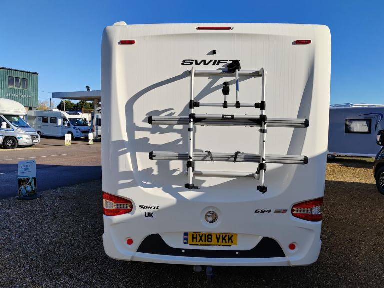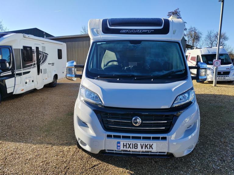 2018 FIAT DUCATO 2.3 MJTD 130 BHP MANUAL 4 BERTH SWIFT ESCAPE 694 SPIRIT FOR SALE IN NOTTINGHAM. COMES WITH A REAR FIXED ISLAND BED OVER STORAGE SPACE. CENTRAL WASHROOM WITH SHOWER & TOILET. CENTRAL KITCHEN. L SHAPED FRONT DINETTE WITH X2 TRAVEL BELTS & BENCH OPPOSITE. CAB SWIVEL SEATS. X3 GAS BURNER HOB. OVEN/GRILL. MICROWAVE. FRIDGE/SMALL FREEZER. BLOW AIR HEATING & HOT WATER. BLINDS & FLYSCREENS. HABITATION ROOF AIR CON. REMIS CAB BLINDS. AWNING. SOLAR PANEL. T/V AERIAL BIKE RACK. TOW BAR. REVERSE CAMERA. EXTERNAL GAS & 240V. ALLOY WHEELS CAB AIR CON. CRUISE CONTROL. LENGTH 7.41 METRES,. WIDTH 2.31 METRES. GVW 3700KGS .OUR EXPERIENCED TEAM ARE HAPPY TO CALL YOU ON THE MOTORHOME/CARAVAN AND ANSWER ANY QUESTIONS YOU MAY HAVE. TEL 01159664401 [Email address removed. Click Email button to contact us.] FOR MORE DETAILS AS OUR STOCK CHANGES DAILY.