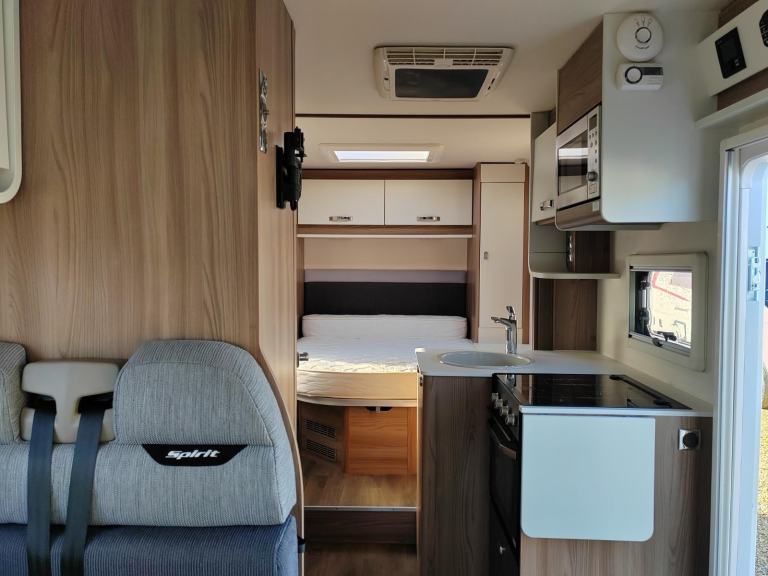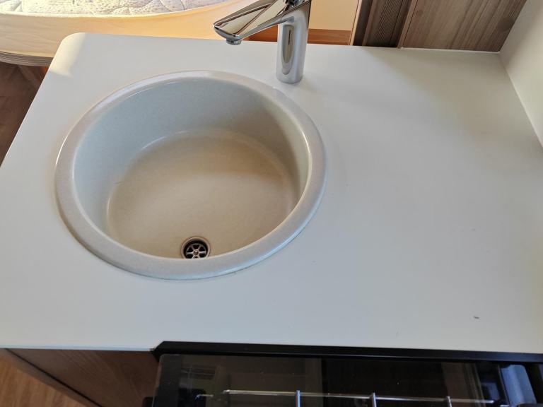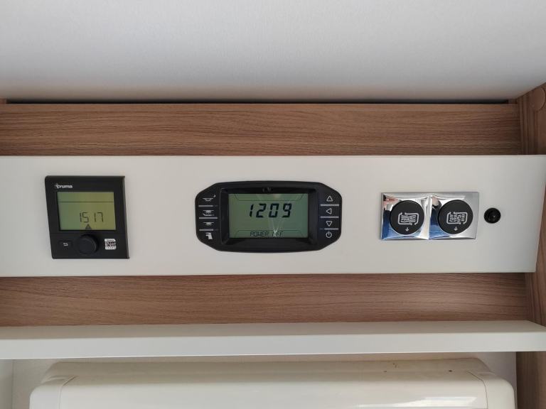 Sunroof; TV Aerial; Central Heating; Fixed Double Bed; Microwave; Cooker; Air Conditioning; 12V Lighting; External Side Lockers; Central Seating Group; Blinds; Grill; Awning; Double Glazing; Mains Hookup; Solar System; Sink; 240V Lighting; Oven; AM/FM Stereo; Hand Washbasin