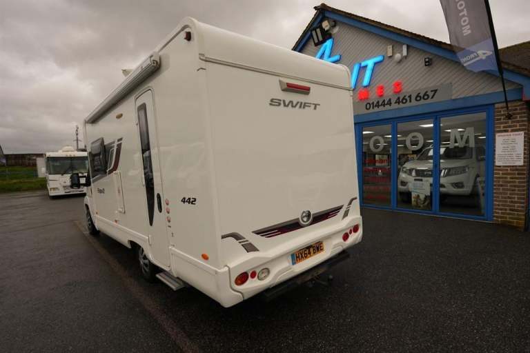 3500 KG Gross weight standard driving licence required only...L-7.25m...W-2.31m...H-2.85m...An exceptional one former keeper low mileage Swift Esprit 442, that has been fastidiously maintained at 5k, 10k, 13k, 18155 miles. Together with full habitation inspections, done yearly. The Swift is the pinnacle of an extremely spacious homely environment 2 berth 2 travelling seats motorhome. Possible the quintessential decision to make, for a discerning couple. Who actually desire a surprisingly spacious, utterly sophisticated, practical and with innovative features. From a recreational vehicle. The Esprit 442 with an inviting interior, adorned with soft furnishing through out and complimented a stylish design outside. A full width luxurious rear bathroom. The perfect space for freshening up, after the days exploring. Featuring a separate shower cubicle, perspex shower screen, toilet, hand wash basin, with a cabinet below to house all the toiletries needed and large vanity mirror. There's a good size wardrobe to hang your clothes etc. Next the fully equipped kitchen area, with dual fuel hobs, 3-burner gas hobs, 1-electric plate, combination oven grill, microwave, fridge freezer, sink and plentiful worktop space including various storage compartments for those kitchen utensils. There's a storage cupboard to house the free standing dinning table neatly away, when not being used as well. Moving swiftly forwards to the serene atmosphere, the actual heart of the Esprit 442. The elegant dinette lounge area. Consisting of two extremely comfortable inward facing long sofas. The perfect solution for literally relaxing or possible socialising with guests. While enjoying each others company and occasionally casing your eyes out at the glorious horizon or the picturesque starry night. The actual seating capacity can be ingeniously increased, by effortlessly swivelling both front captain seats around, if needed. Finally of night time and when your ready for that cosy night sleep. You have the added advantage of sleeping individually length ways or will seamlessly transforming into an adults size double bed. Where you will definitely awake up totally refreshed and ready for the days adventure ahead. Which makes up the clever sleeping arrangements of the beautiful Swift Esprit 442. As you would expect benefits from it's exclusive specification such as, wind out canopy awning, cab air conditioning, cruise control, cab blinds, tow bar and will be supplied with all the original documentation, manuals, including two sets of keys. Ready to elevate the adventurous couple and their holidays together.