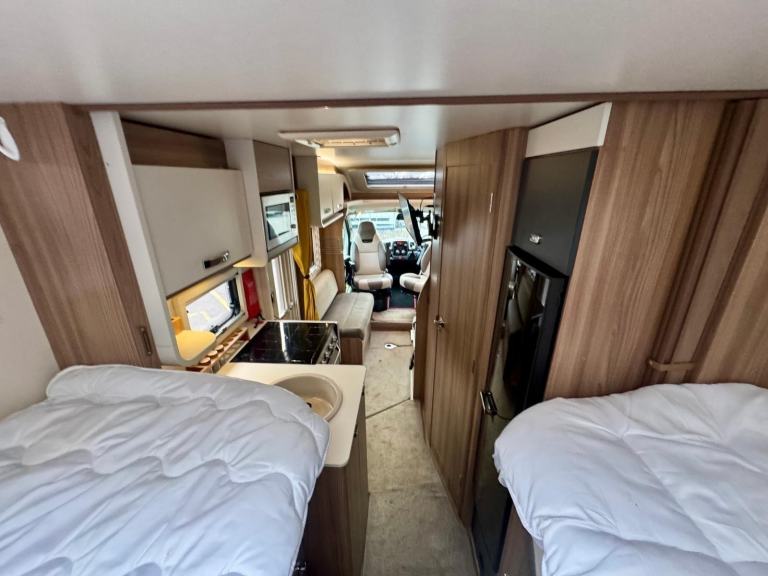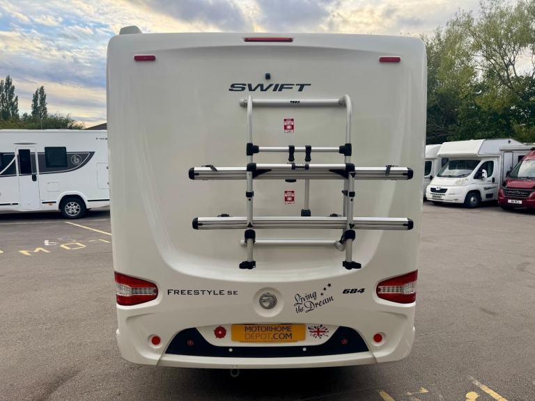Swift Freestyle 684 – 2016 (16) – 25,600 miles – 3 owners – 12-month warrantyA popular Swift dealer-special based on the Escape 684 layout. The Freestyle 684 gives you a bright front lounge, mid kitchen and washroom, and fixed twin single beds over a useful rear storage area. Comfortable to tour, easy to live with, and nicely upgraded with practical extras.HighlightsRegistered: 2016 (16 plate)Mileage: 25,600 milesOwners: 3Berths/Belts: 4 berths / 4 travel seatsLayout: Front lounge, mid kitchen and washroom, rear fixed twin singlesCondition: Clean example with useful upgrades already fittedWarranty: Supplied with a 12-month warranty for peace of mindLiving & SleepingParallel lounge with swivel cab seats – relax by day, converts to additional sleeping at nightFixed twin single beds with quality mattresses and overhead storageWashroom with shower, toilet and basinComfort & EquipmentTruma Combi blown-air heating & hot water (gas/electric)Fully equipped kitchen with hob, oven/grill, sink and fridgeLED lighting, multiple 230V and 12V points, TV prepExtras & Upgrades FittedOn-board WiFi system for better connectivity on the moveBike rackExternal 230V socketExternal gas BBQ pointRefillable LPG system (AutoGas) – convenient and cost-effective refuellingDrivingFiat base vehicle with car-like handlingSwivel captain’s seats, power steering, cab A/C (where fitted)Supplied withFull habitation check prior to handoverFull workshop inspection – every vehicle goes onto the ramp to be checked mechanically and structurally1 month warrantyKey Figures*Length: approx. 7.41 mWidth: approx. 2.31 mHeight: approx. 2.88 mMTPLM (Max Gross Weight): 3,700 kgBerths: 4 Seatbelts: 4*Figures and specification can vary by model year and options. Please confirm exact dimensions, weights and equipment on the VIN plate and vehicle documents prior to purchase. Please note, this vehicle is not a brokerage unit and as such means that it is compliant with the Consumer Rights Act 2015.