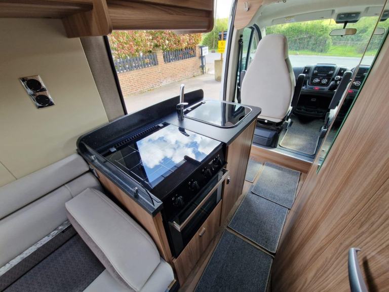 Comes full of features as you expect including 6 speed gearbox, cab air con, cruise control, Bluetooth radio, captain seats, end lounge, WC and shower, 3 gas burners, sink and many more.