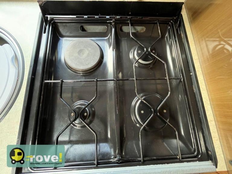 The washroom is a good size with toilet, sink with shower attachment and shower screen. The kitchen has good amount of worktop space and includes cooker with oven, grill, 3 gas burners, 1 electric hob, plus sink, fridge freezer and microwave.