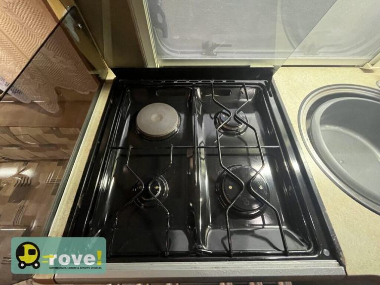 As you enter the motorhome immediately to your right is the kitchen area which has some great space for all your preparation needs for cooking. Here you will find the full oven with separate grill and 3 gas burners with 1 electric for the hob. There is a sink with mixer tap and under counter three way fridge with Freezer compartment. As you move towards the rear of the vehicle you find the highly sought after end lounge, which is such a bright and airy space to relax. This also converts easily into the large double for sleeping. On the opposite side to the kitchen is the large wardrobe and the washroom which has a toilet cassette, washbasin with mixer tap and a shower.