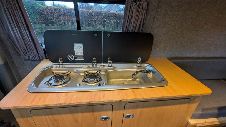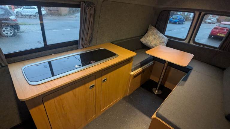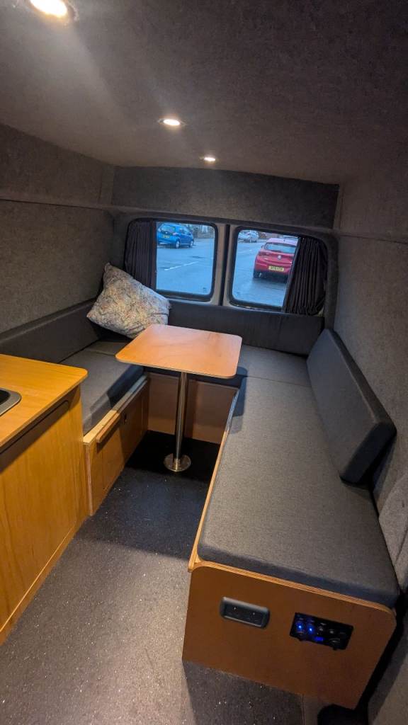 T5, VW transporter, long wheel base, medium roof. Lovely campervan, newly professionally converted into a camper. Large seating area for 6 people with table in the back. Converts into double bed. Under seat storage cupboards under all seating. Double gas hob. Sink and water pump, with sink drain to outside. 12v touch spot lights in the roof and USB ports powered by leisure battery. Fitted curtains. Well insulated. Van drives well, no issues. Passed MOT no concerns. Only selling as I have had a change in personal circumstances and am not using enough to justify keeping it sadly. Looking for a new owner to take it on some adventures!