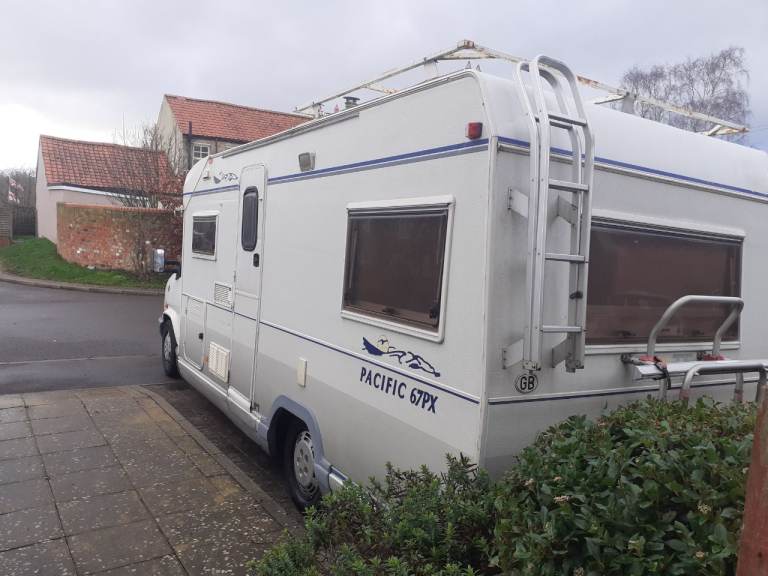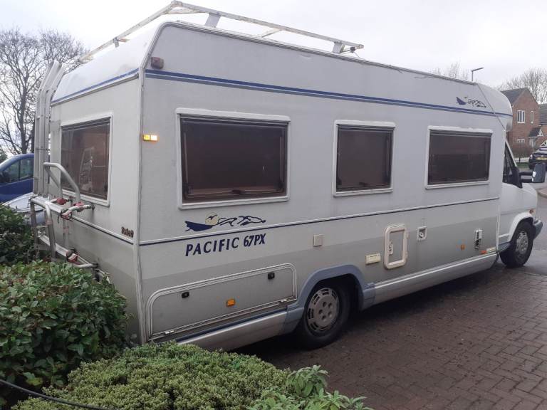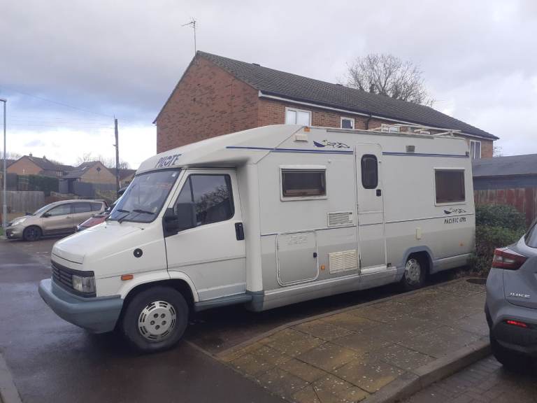 1993 L reg talbot 2.5 turbo diesel pilote pacific 4 birth motorhome. 7 months m.o.t. only 89.000mls. Fixed rear bed. Dinette drops down into double bed. Solar power. Recent New batteries, new injector seals.new brakes all round. £650 spent on last m.o.t, runs and drives great, power steering, cd system. Tyres are all like new. No rust on arches all solid. Galvanised chassis, not bad condition for over 30yrs old. Old but gold reliability, great for off grid, TV.status Ariel roof rack. Bike rack. Rear ladder. On board water tanks. 4 ring gas burner. Fridge freezer. No time wasters. Serious buyers only.