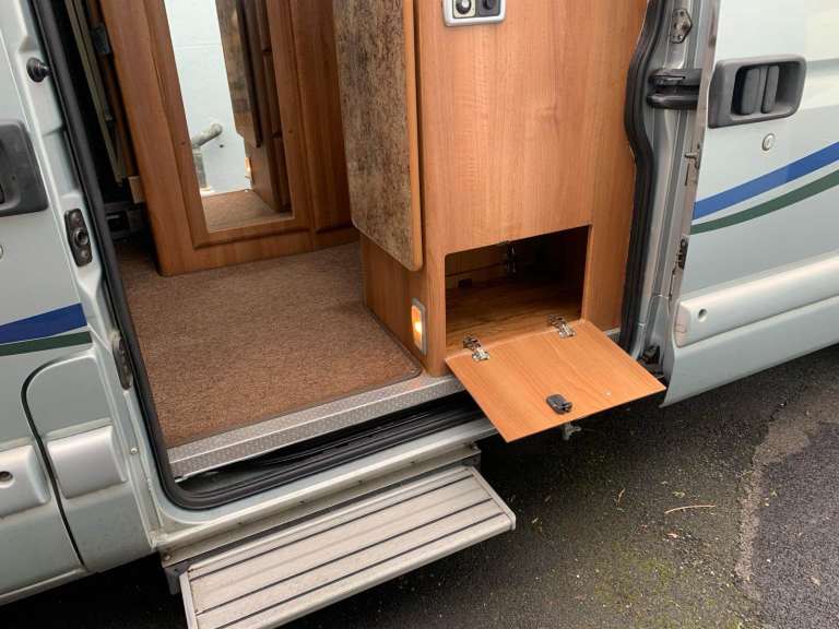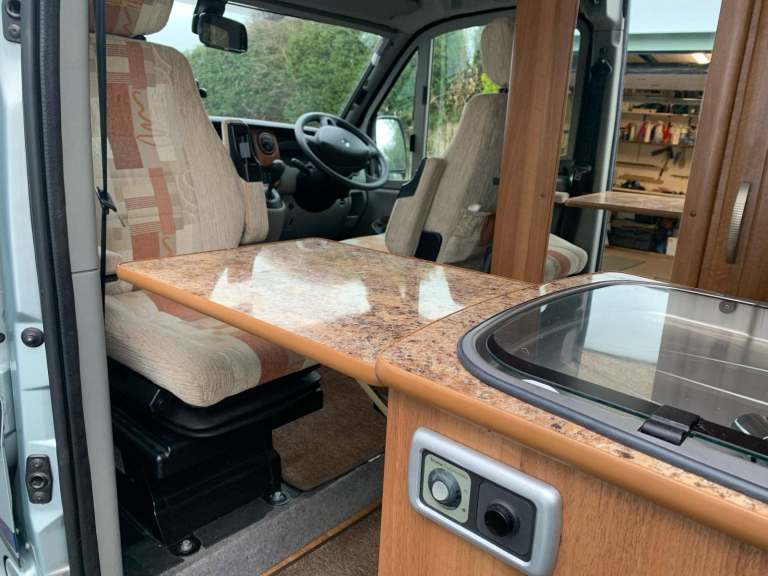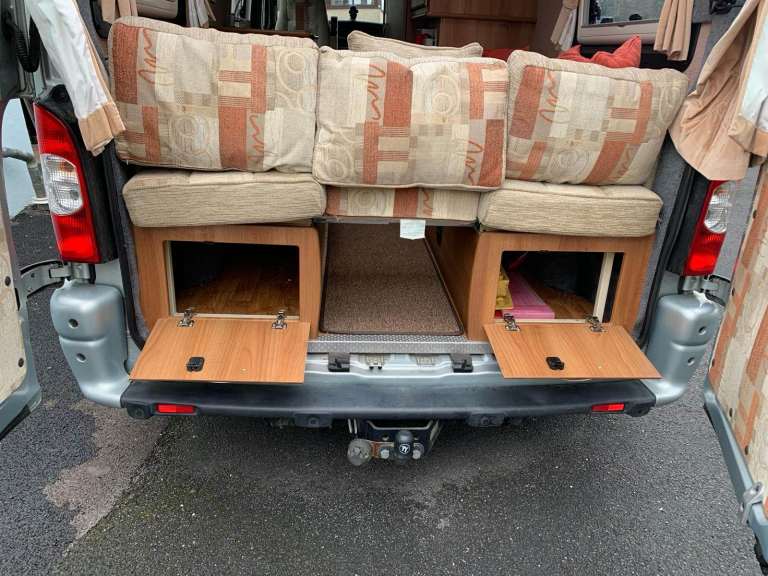 Fixtures and fittings are simply stunning with the fine detail of chrome handles, curved units, pop up shelves, free standing table, superior soft furnishings, loose carpets, scatter cushions and stylish flooring have created a simply stunning and high end campervan