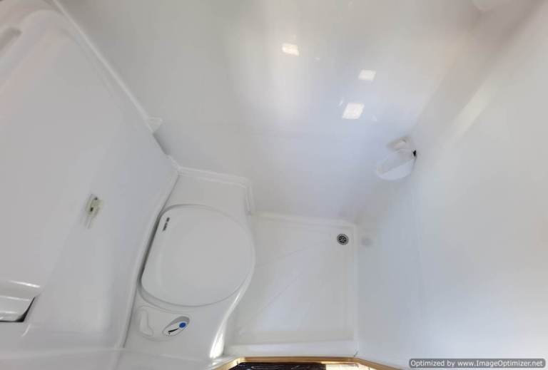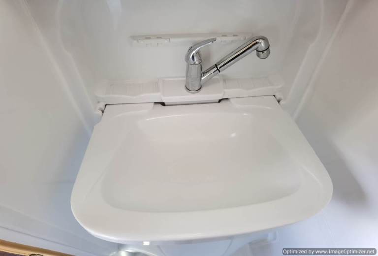 Washroom has been designed making use of the space with flip down sink, toilet and showering facilities