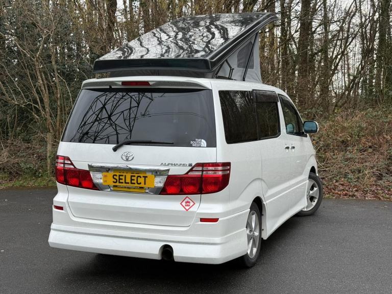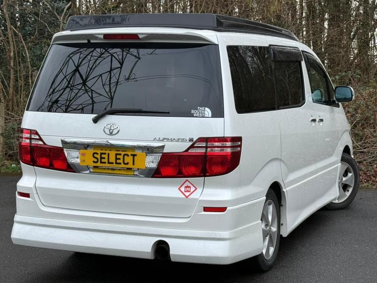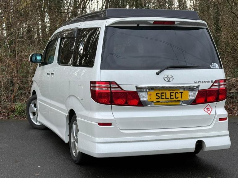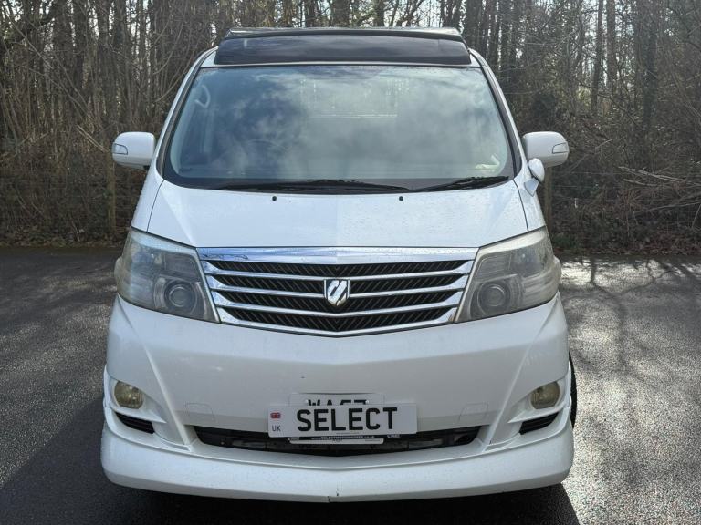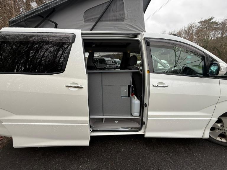 Inside, the clever camper conversion transforms every trip into a getaway, offering a comfortable and versatile space to relax, sleep, and unwind wherever you stop. Ideal for road trips, festivals, or spontaneous weekends away, this Alphard is ready to go and rare to find in such low-mileage condition. Simply turn the key, start the journey, and enjoy the freedom this campervan lifestyle brings. Features Include: air conditioning, bluetooth connection, climate control, abs, air bag, alarm, remote central locking, electric sliding doors, electric windows, radio, front armrest, front head restraints, alloy wheels, body coloured bumpers, bluetooth, 240v hookup, non slip flooring, pop top, rock and roll bed