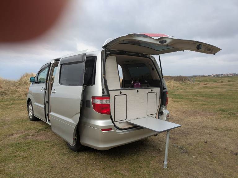 Silver Toyota Alphard 2.4l Camper Conversion.