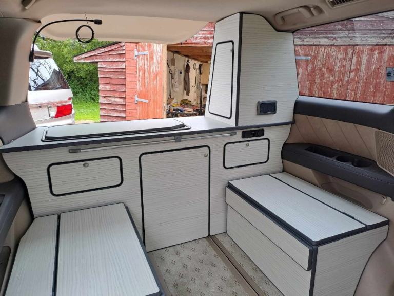It is also undersealed for rust protection for years to come. The conversion is a rear conversion with the kitchen being at the back which comes with sink, water and waste disposal tanks, gas cooker (with gas bottle) and electric sockets with an inverter for the full off grid experience. Also there is plenty of cupboards with loads of storage space. There is rear picnic bench style seating for 2 with the rear seats swiveling round for up to 5 people to sit round the table. The seats fold flat and table folds down to form a near full size double bed. Comes with a fitted memory foam mattress which fits perfectly to the shape of the seats for a really comfortable sleep. It also comes with an updated pioneer stereo system which has android auto, Bluetooth connectivity etc. The van also has duel sunroofs which is the reason we never got the pop up roof as we wanted to star gaze of an evening which we have managed to do on some clear nights we've been away. The van also has multi zone climate control which means heating up the van off grid is easy. There is obviously some light scratches and scrapes and some paint disclourisation which is expected on a vehicle that is 22 but nothing major. The headlights and rear light units are crystal clear with no fogging which is a sign the van has always been looked after as well. We have only had the van for around a year and unfortunately due to other commitments we are having to sell, as we just aren't using it. The trips we have done have been great and we'll miss our van loads but there's just no point in it sitting outside not getting used for most of the year. It's genuinely a cracking van and something we always wanted, but we just haven't been using it at all, so makes sensethat someone else can make use of it . offers please