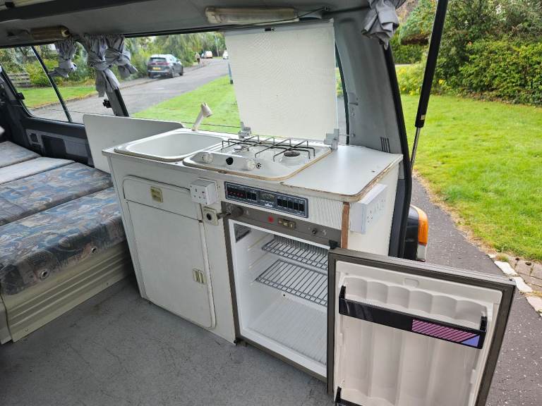 The van is regularly serviced and drives with no issues. It is LEZ compliant due to age and in about 8 years will be eligible for road tax exemption. The 3 way fridge is not working currently but we use it as a cool box. Stove and sink work no issues and comes with 3/4 full gas canister. Also comes with bike rack, new spare alternator as well as some other things. Tyres are all recently new as well as great condition spare. There are some bits of rust that will need looked at in the future but is consistent with age.