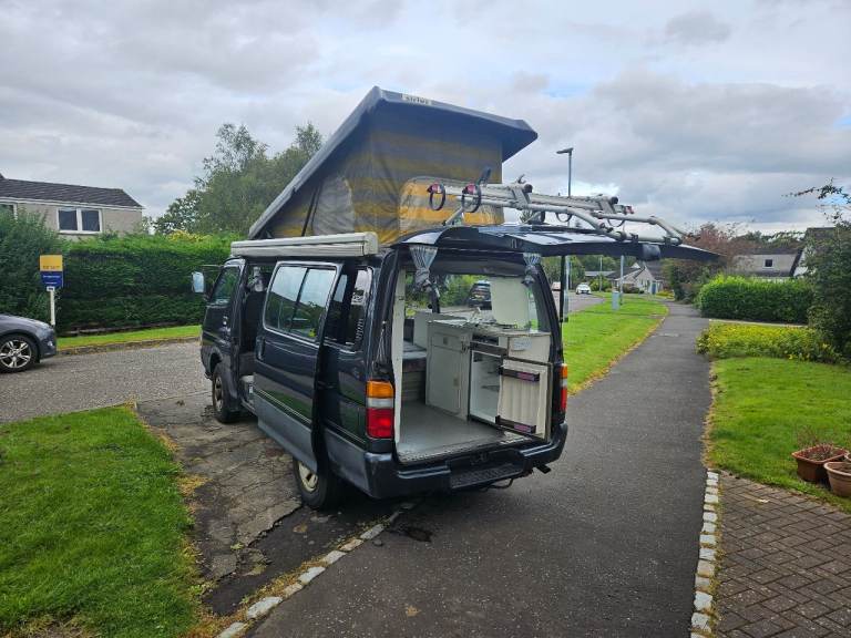 Here we have our rare and retro JDM 4 birth campervan. It has a side awning and pop top as well as rock and roll bed. There are 7 seats with working seat belts. Automatic transmission and as long as you don't put your foot down then surprisingly economical, its also very comfortable on long journeys.Bought the van for £8k four years ago and has had a lot of love. Any work needed has been done to keep it running smooth. Happy to have a chat but highlights are...