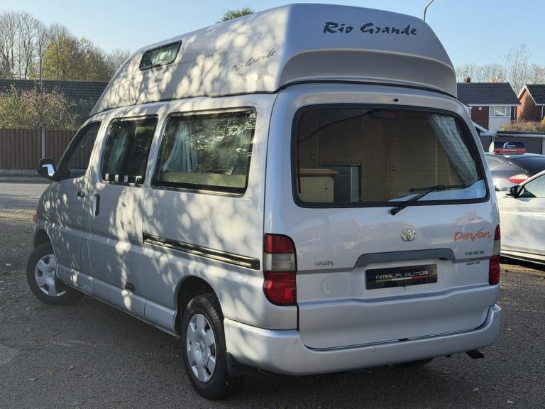 Amalfi Autos are proud to offer this Toyota Devon Rio grande ! A lovely 2 berth camper van professionally converted by the highly regarded Devon! A sociable lounge area with swivel seats , table and 4 belts ! A kitchen with full cooking and washing facilities , ample storage and a hidden toilet ! Mechanically the van will come with a fresh mot and service