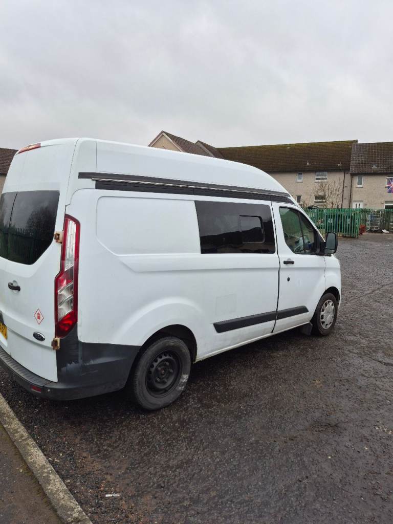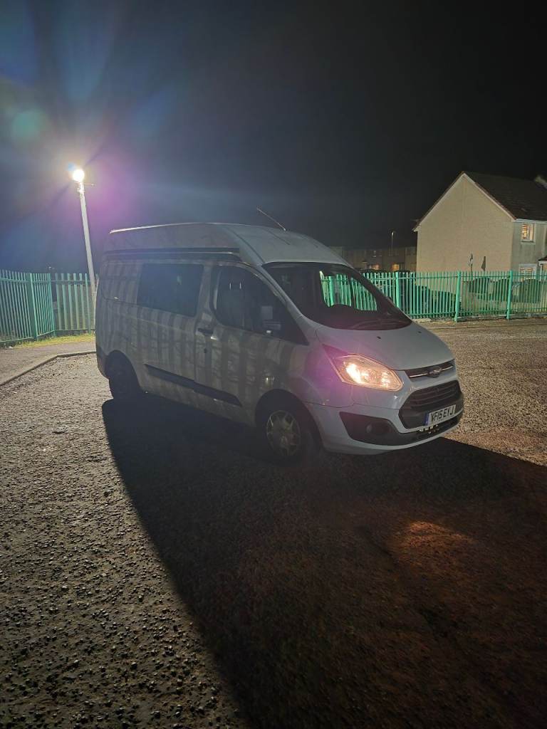 12 month mot Transit custom trend camper/day van 158k near full service minus around 4 stamps drives fantastic, diesel night heater smart alternator power inverters split charger unit and solar panels ,x3 leisure battery's , totally off grid 240v power touch spot lights in the roof fully insulated, rock and roll bed with seat belts,front seats on swivel bases van itself is a trend model so has a few extras ew em cruise control ect window in the rear opens also ,has had new wish bones both sides abs sensors handbrake ect,,, cooker was never fitted due to a camping stove also has a air awning V5 will need applying for as it been lost no time wasters at all £6700 no time wasters at all LOCATED NEAR LARKHALL