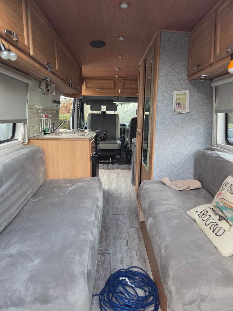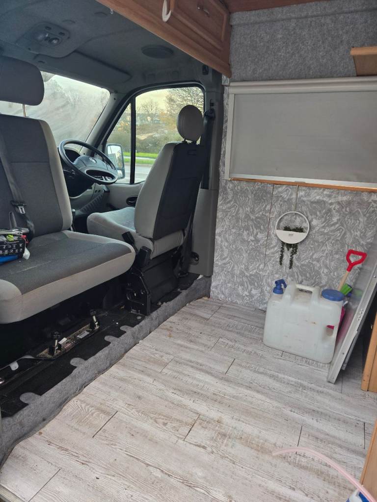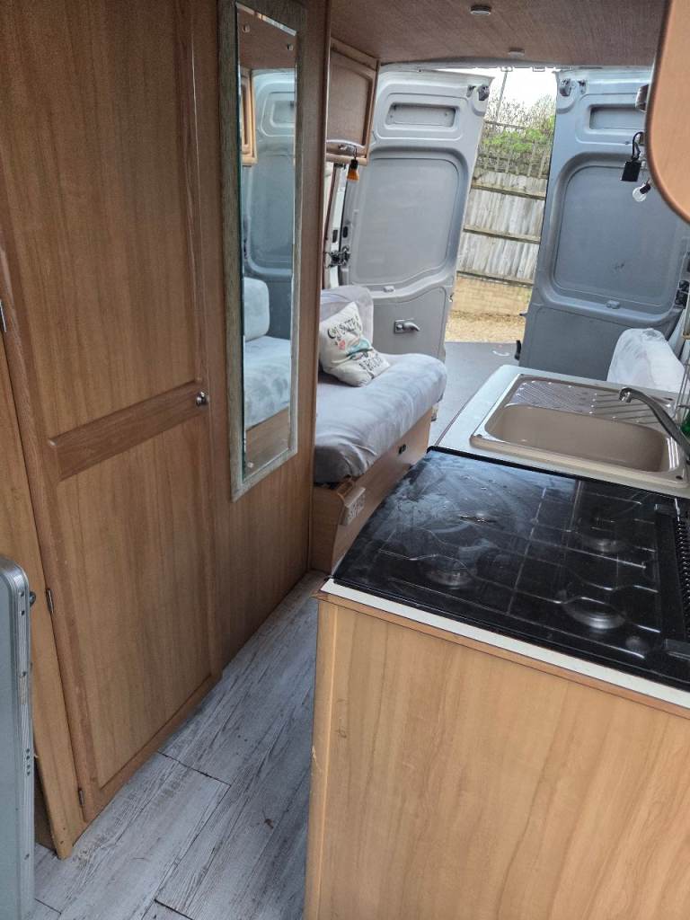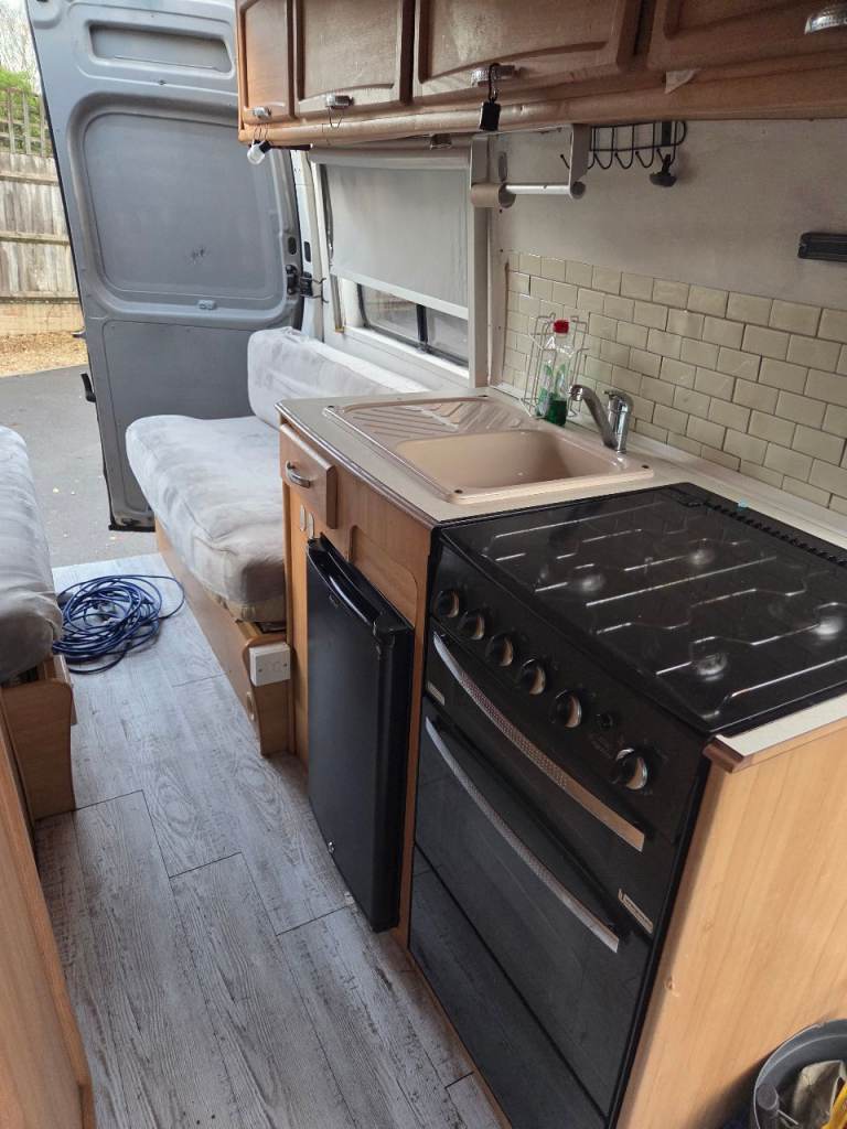 Great van with low miles only 60k mot u till august 2026. Ready to use featuring electrics 12v and 240v with all in 1 built in unit and 200w solar panel. Spin around twin front seats and also a 4th seat with seat belt I can Include with the van but currently not in use. Full range gas cooker with 4 burners, grill and oven fridge unit and sink with 30l water tank and pump, also a bathroom sink area. Plenty of storage throughout overhead and above cab. I have owned the van 5 years and has never let me down and been a pleasure to own, I have now brought another van which I am converting which is the reason for sale. Viewing and offers welcome in swindon.