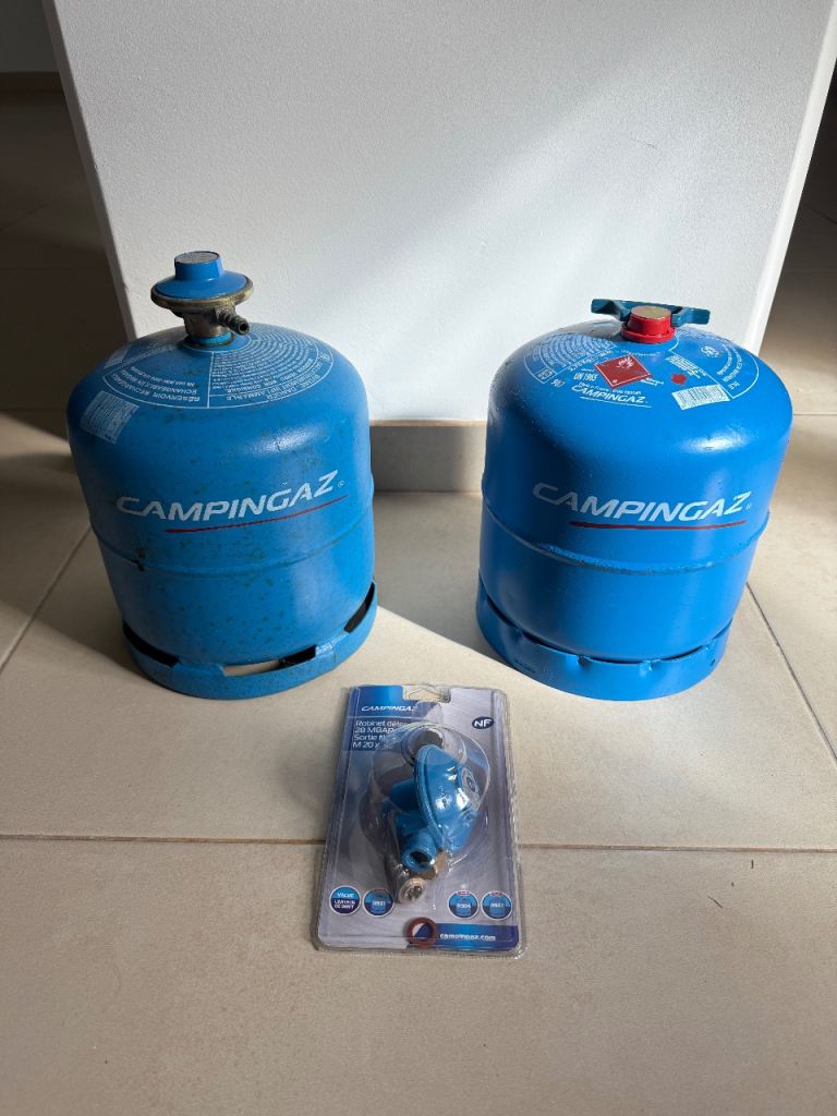 - 2x spare gas bottles + brand new regulator (1x full/unused + 1x used)