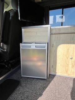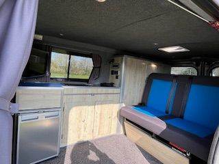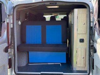 We fitted a longer rock ‘n’ roll bed as I am tall and the standard bed had my feet dangling off the end There is a 2 burner cooker, sink and fridge.