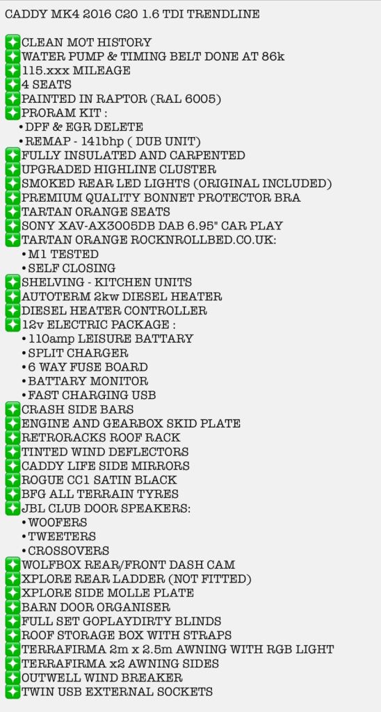 Green Raptor-painted VW Caddy swamper, fully loaded and ready for adventure!