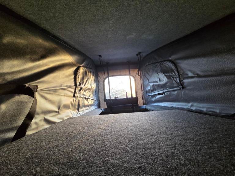 Pop-top roof gives extra room and ventilation when camping (could sleep a small child) there is a small area of damage in the material, but this has never leaked.