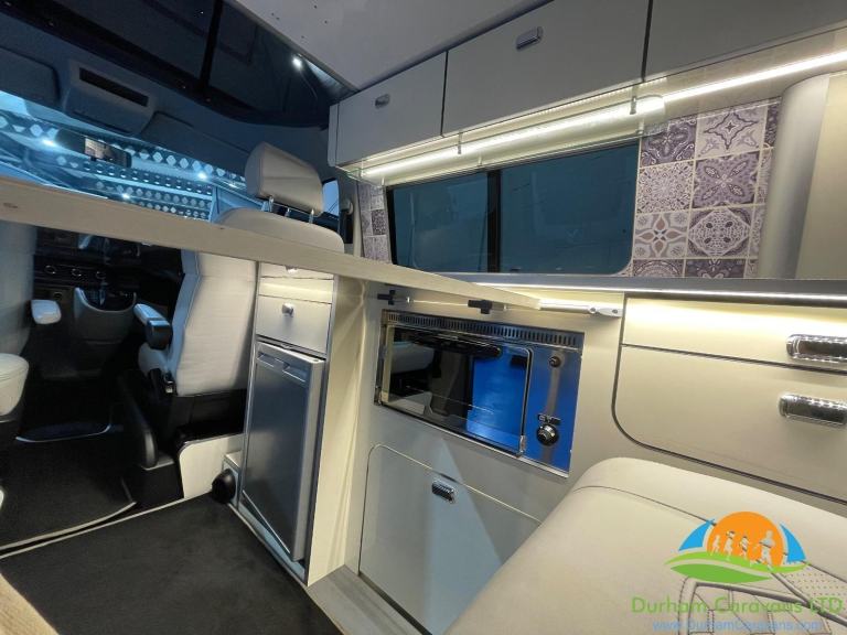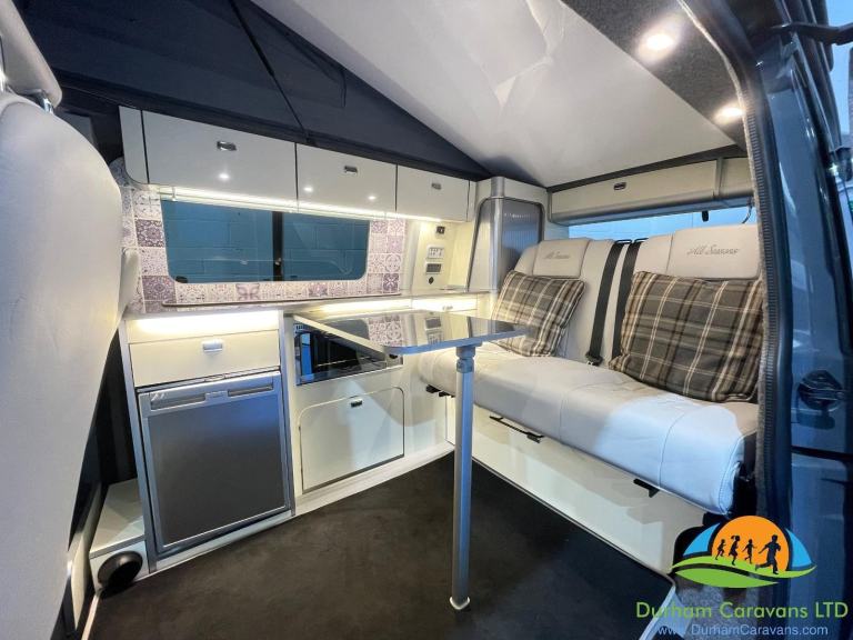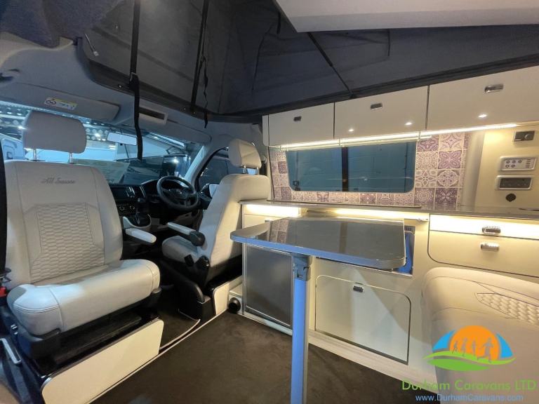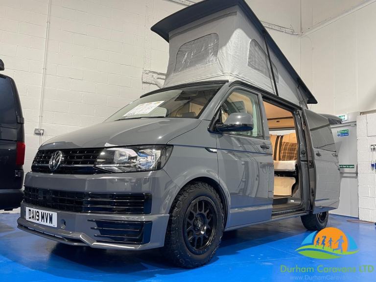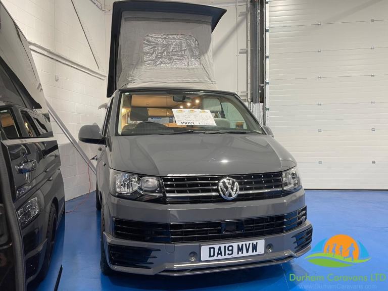 For sale is a 2019 DSG Volkswagen diesel campervan with only 24500 miles on the clock from all seasons. This versatile vehicle is perfect for all seasons, offering a comfortable and convenient way to explore the great outdoors. With a 4-berth layout, it is ideal for family adventures or group trips, providing ample sleeping space for everyone. The campervan is equipped with all the necessary amenities for a comfortable journey, including a kitchen area, bathroom facilities, and plenty of storage space. Whether you're heading to the beach in the summer or tackling the mountains in the winter, this vehicle is ready for any adventure. Built to the highest standards and meticulously maintained, this campervan is in pristine condition and ready to hit the road for your next unforgettable journey., Features Include: air conditioning, bluetooth connection, full leather, 2-burner hob, fridge, fridge freezer, grill, hob, oven, 1 year warranty, 12v compressor fridge, diesel heating, on board water tank, pop top, webasto diesel heating
