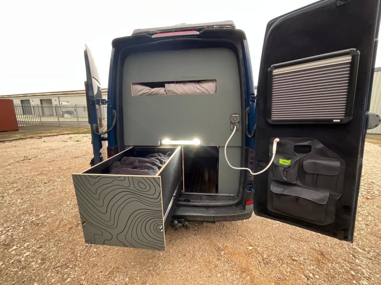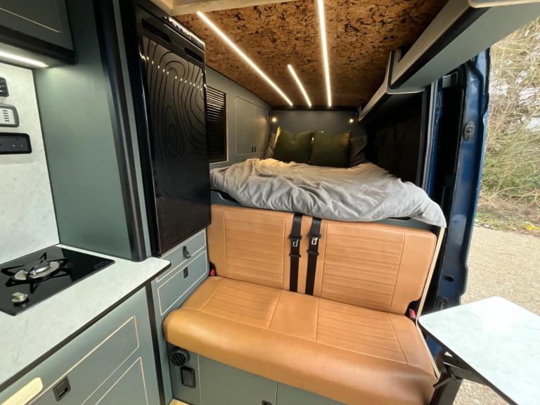 Motorhome Depot Derbyshire and South Yorkshire is excited to present this eye catching 2017 4 berth Volkswagen pop top Crafter Campervan. This vehicle is located in Ilkeston, Derbyshire. This stylish campervan has recently been professionally converted to a very high standard and is ready for its next adventure. Designed with off grid camping in mind, this campervan features everything you would need to explore the wilderness in comfort. Entering through the side door we are greeted by the attractive interior complete with strip lighting and complimented by the tan leather style upholstery. Here you will find the Thetford single gas hob, sink, 90L fridge/freezer, clever pull out chopping board and plenty of storage. For dining there is a swivel table which can be easily manoeuvred to give you the space to relax while watching the 32” cello smart tv. To the rear of the campervan you will find the comfortable fixed double bed complete with 2x touch reading lights with USB. Under the bed is an abundance of storage including a large pull out heavy duty draw. Finally you will find the second sleeping area in the pop top which you can access using the extendable ladder. This pop top has a panoramic canvas giving plenty of natural light and views for miles. With masses of additional extras, this campervan represents great valueAdditional features;Cab air con32” TVAlloy wheels with A/T tyresOutdoor shower point with hot waterExternal BBQ point Tow barMains electric water heaterOn board 80l fresh water tankDiesel heaterFogstar 230ah lithium battery with heated element & Bluetooth connectivityVictron dc to dc 18amp chargerVictron smart lithium battery charger200w flexible solar panelPlease get in touch to view the additional photos and walk round video. Motorhome Depot Derbyshire and South Yorkshire would be delighted to arrange viewings of this campervan. All our vehicles are HPI checked, and a full demonstration of the vehicles will be carried out on handover.Part exchange and finance welcome, for further details and to arrange a viewing please call Tom on 01332 974436, [Phone number removed], [Phone number removed].