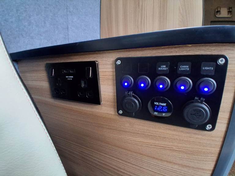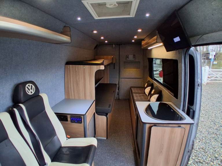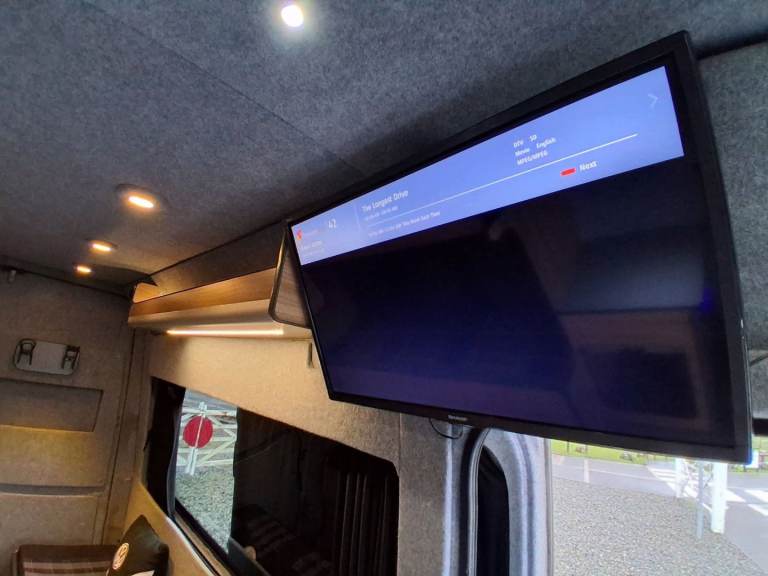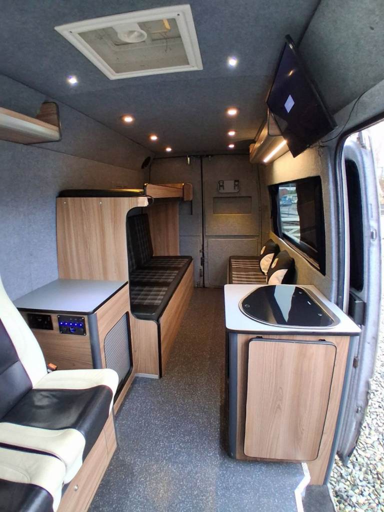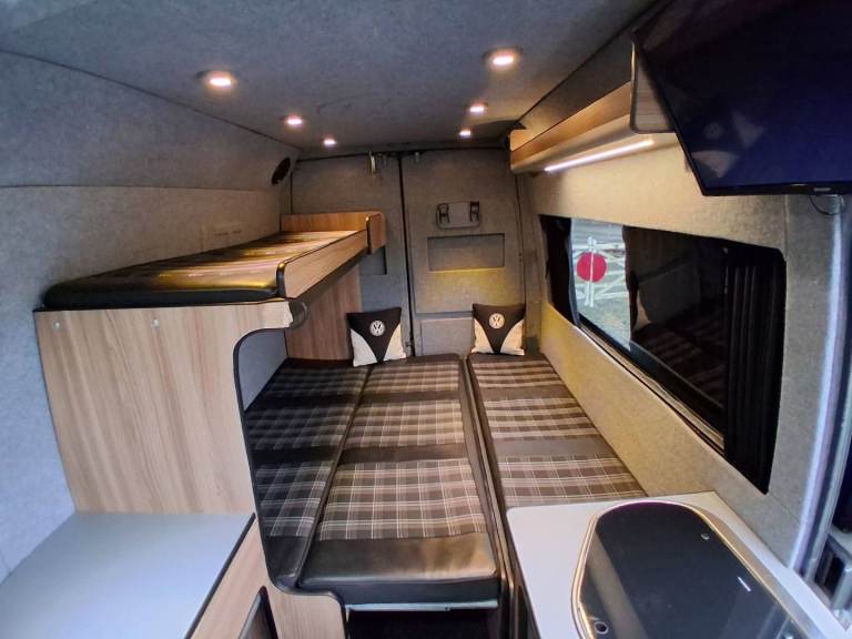 The option of 3 single beds or one double and a single bed is really easy to slide out and takes seconds. We have a smart TV fitted to the rear ( you just need a aerial for free veiw) 240v plug sockets to the rear along with a handful of usefull USB and cigarette style ports, sink and stove, diesel heater and electric heater, split system can be plugged in to 240v, touch lighting to the ceiling, everything will run off 12v too so cam be off grid, speakers throughout with upgraded head unit. Plenty of storage throughout. Cycle carrier to the rear * can be removed
