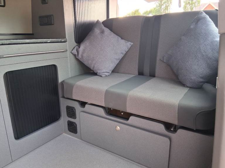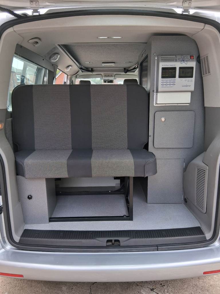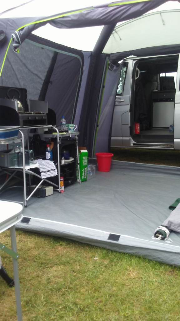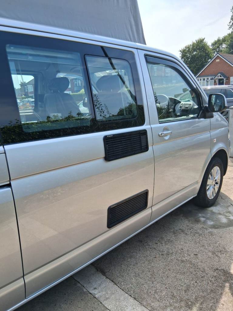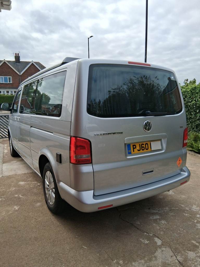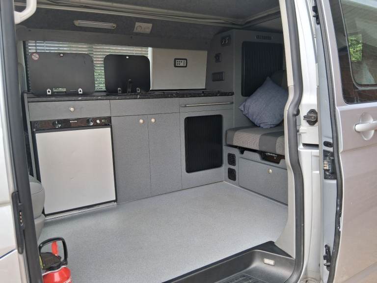 Silver 2011 LWB T5 Volkswagen, a lovely well looked after campervan that has everything you need for your adventures, including a Outdoor Revolution Cayman Air drive away awning (used 3 times) and a Fiamma bike rack & Fiamma Big Box storage. (as in photos)