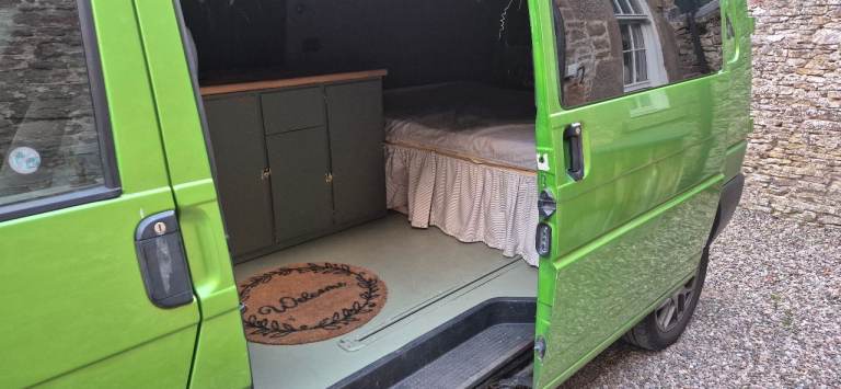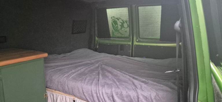 12 months MOT , just servicedGreat Van , worktop , sink and gas stove inbuilt. Double size bed in back. Fully curtained. Side awning included..New Leisure battery and diesel heater included. New main battery just been fitted.