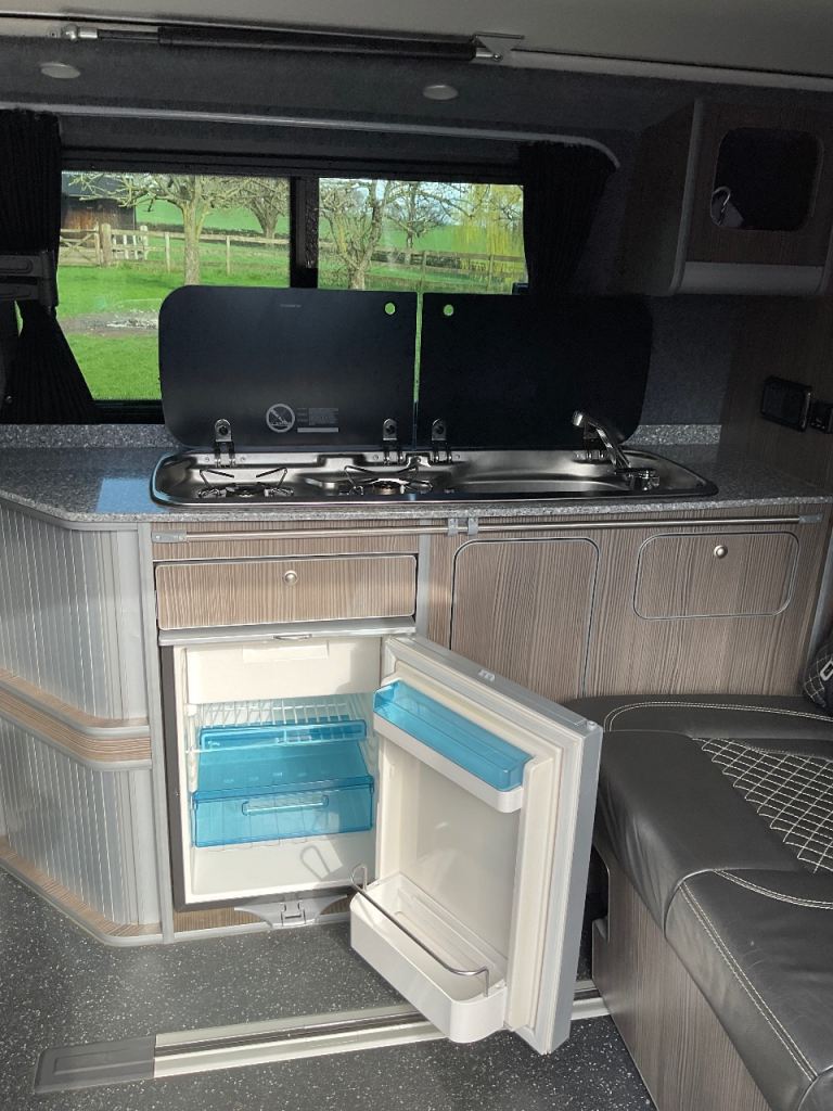The conversion included a colour coordinated German made SCA 194 pop top roof with a memory foam mattress that can sleep two adults.