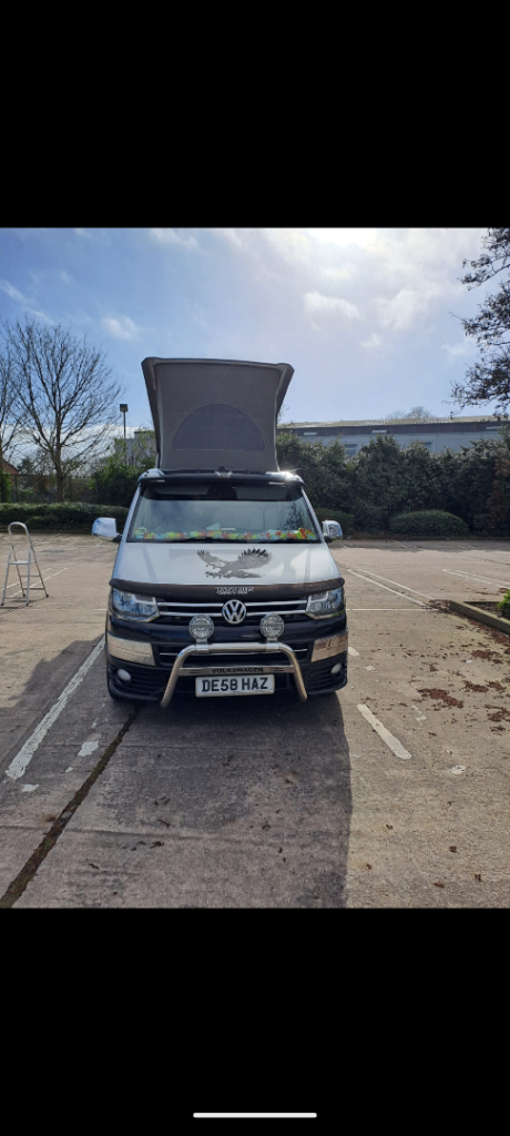 LOW MILEAGE!!!!! 2012 VW California for sale. Electric hookup point, gas hob with a full bottle of gas, sink, fridge, rock & roll bed, electric pop top roof with additional bed making this a 4 berth, double front passenger swivel seat, seats reupholstered 5 months ago costing £2k, 6 months MOT, 2 brand new front tyres, new timing belt, new water pump, wind out awning, tow bar, 57,000 miles. VERY GOOD CONDITION advertised on other sites