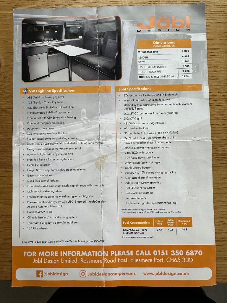 The van was first registered in Oct 2023, but the full camper conversion was completed brand new by JOBL in Feb 2025, so the conversion is only around one year old with very light use. Lady Owner