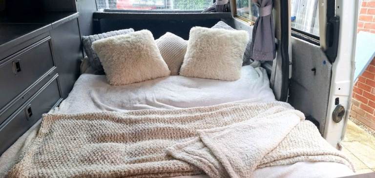 •Conversion: Factory Auto-Sleeper Trident – rock & roll bed, swivel pilot seat, kitchen with hob/sink/fridge, storage throughout, high top roof with extra headroom and sleeping space