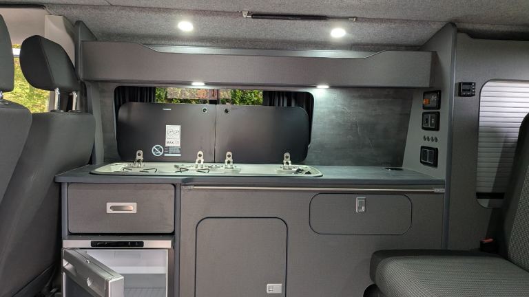 Professionally converted by Convert Camper Vans (Cardiff) — it’s fully equipped, modern, and comes with everything you need for camping.