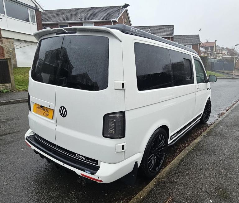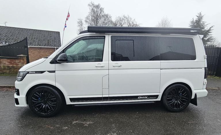 Motorhome Depot Ashfield presents this 2017 Volkswagen Transporter T30 T6 Onyx Edition campervan, a professionally converted short wheelbase van offering a great balance of style, comfort, and practicality, with just 47,025 miles on the clock.Finished with the desirable Onyx Edition exterior styling, this campervan stands out with its sporty appearance while remaining fully functional for real-world touring. Inside, the layout has been thoughtfully designed to maximise space and usability.Key highlights include a Skyline pop-top roof with upper bed, M1 crash-tested rock & roll bed, Eberspächer diesel heater, solar panel, reversing camera, and an upgraded radio system with Apple CarPlay and Android Auto. The van has also been professionally remapped for increased BHP, offering improved performance and drivability.The van is supplied with 12 months MOT with no advisories and has had the cambelt and water pump replaced at 35,000 miles. A smart, well-presented campervan that’s ready to enjoy. Please feel free to contact Tara for the full extended information pack, including additional images and a video walkaround.