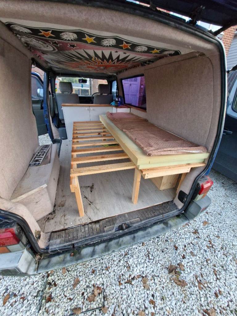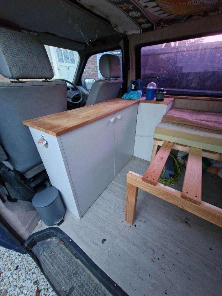 Has a fixed pull out bed and built in storage with space for induction hob the in worktop.