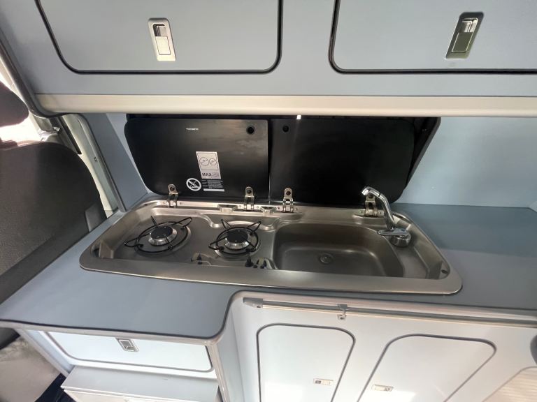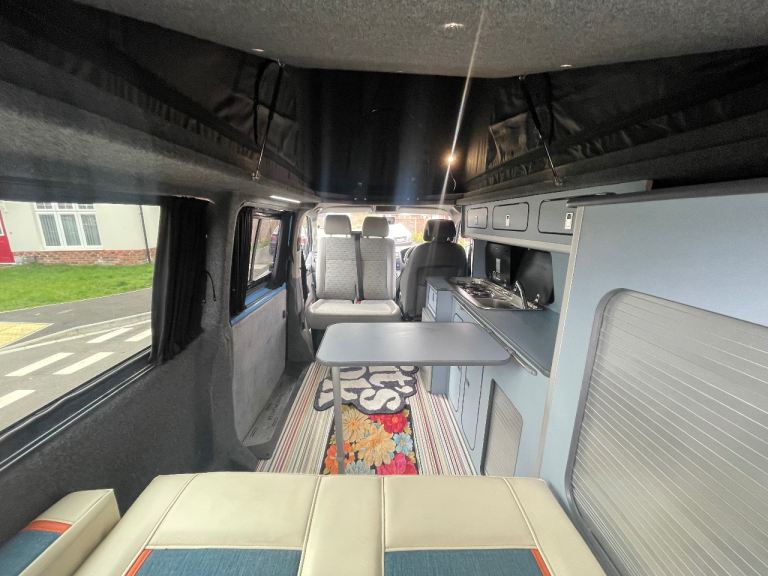 This is a 4 berth camper, with a rock & roll bed below and extra sleeping space in the pop-top roof, making it ideal for families or couples wanting extra room.
