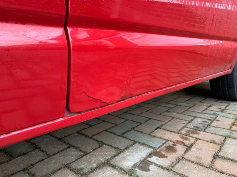 There are a couple of negatives to point out, there’s a rust patch to the near side sliding door (see picture), the fuel gauge is intermittent and the mirror switch has stopped working.