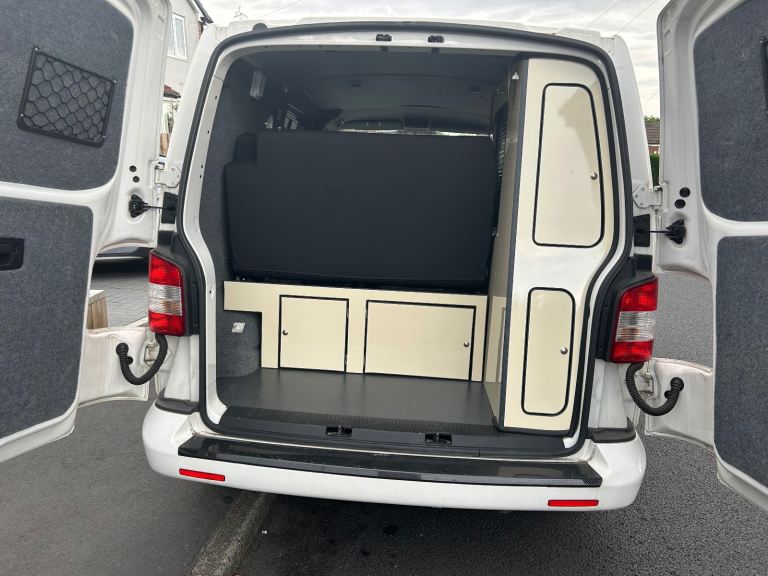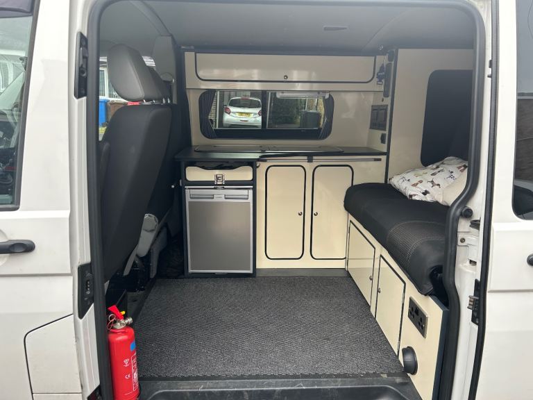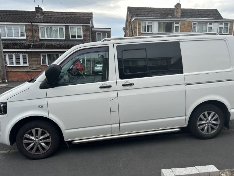 T5, 1 face lift model. In candy white and in good condition both inside and out. Captains seat in front fixed rib bed in rear which is 2 belted seats so carries 4 comfortably cost 2500 with receipt, all seats contrasting vw grey cloth, fully curtained, gas bottle, fresh water carrier, porta loo, brand new hook up cable, sink, 2 ring hob, carbon monoxide detector, compressor fridge freezer, night heater with separate diesel tank, L.E.D lights all round, storage, safe under seat, wind deflectors, solar panel, leisure battery, Outdoor revolution drive away awning used once, f,s,h with loads of receipts, mileage 125790 this will increase as used daily, m.o.t February 2026, last serviced at 121590 miles, cambelt and water pump at 80,000 so already done for peace of mind, stamped service book, owners handbook, 2 keys, chrome roof and side rails, dab radio/cd, please feel free to ask any more questions, . WOULD CONSIDER PART EXCHANGE FOR ESTATE/SUV