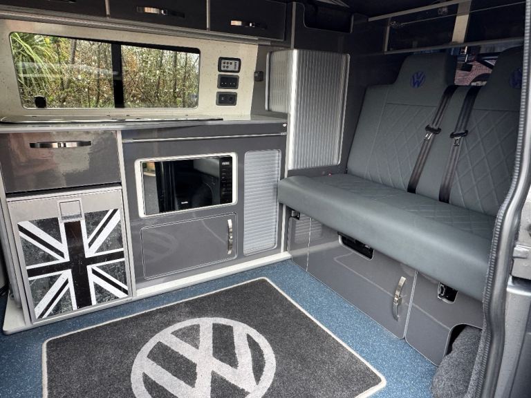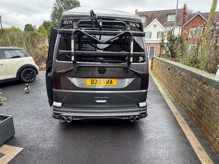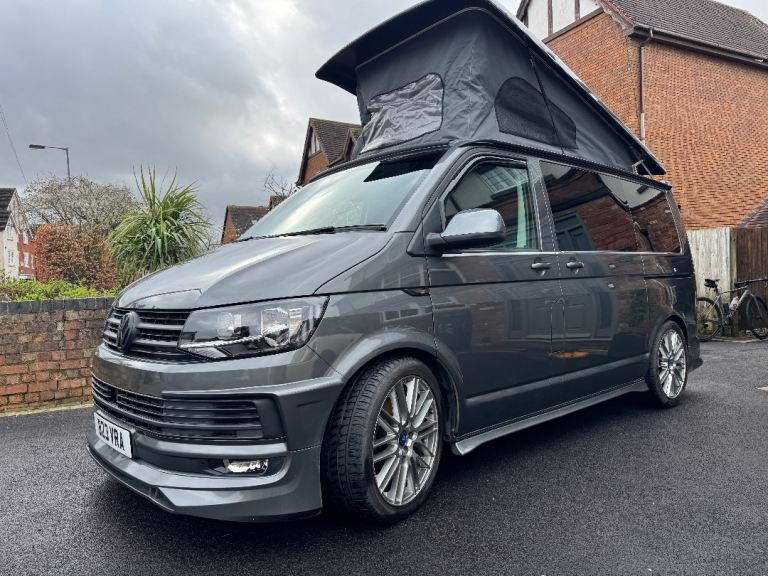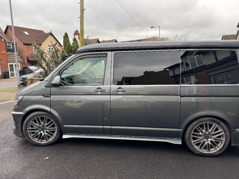 T6 Campervan for sale . 2 owners low mileage £15900 . Good condition . Full MOT . Rock and Roll Bed , Front seats turn around .Pop up top , high end conversion . Microwave ( Never Used ) 2 ring Gas hob and sink . Grey with Body Kit and Alloys . Fitted Bike rack also fitted .We also have 2 Vango Air beam awnings, along with other associated items that could also be that purchased subject to price .