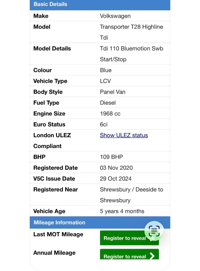 2020 Volkswagen Transporter T28 Highline. 24000 miles. Excellent condition both interior and exterior. Four seatbelts, MOT until November 2026. Bike rack included.