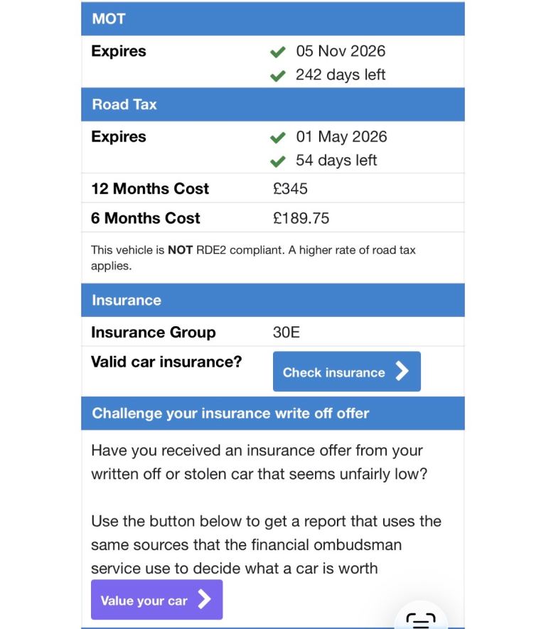Buy the full report for guaranteed data accuracy, outstanding finance, valuation, milage check & VIN match for £9.99 (normally £19.99)