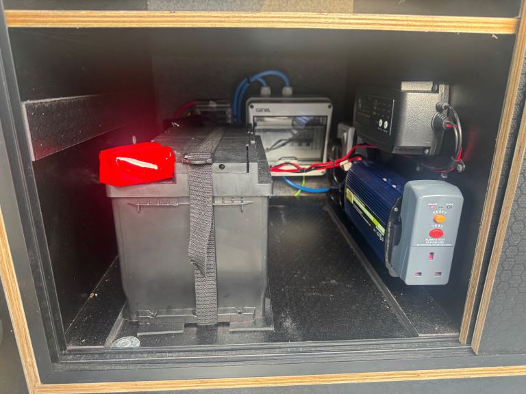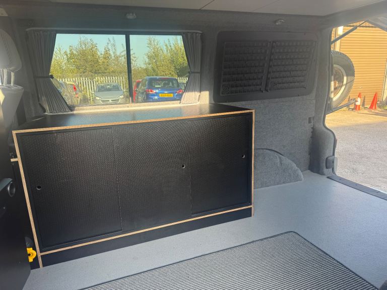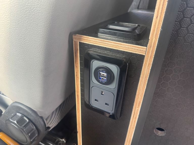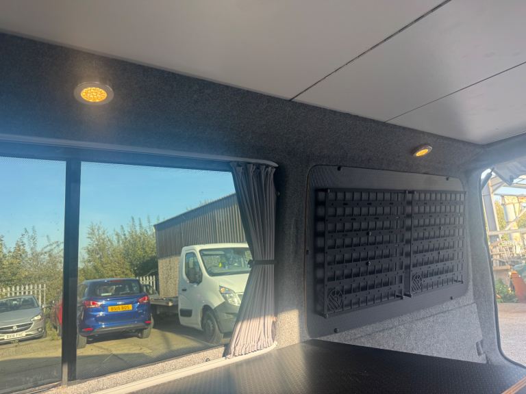 Upgraded head unit with appleplay and reverse camera.. storage, lights, fitted curtains, usb chargers, hook up cable.drivers internal handle does stick a bit.