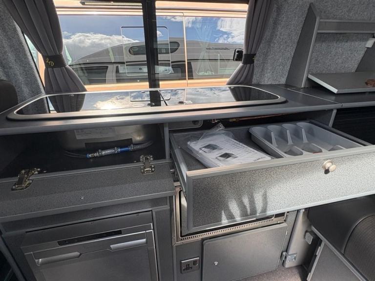 2018 Volkswagen Transporter T30 Startline TDI BlueMotion Technology Leisure Drive Manual, 5 Seats. A practical and versatile vehicle professionally converted by Leisure Drive, ideal for everyday driving, family travel, and weekends away. Well known for reliability, comfort, and strong build quality, the Transporter remains one of the most desirable camper and leisure vans on the market.