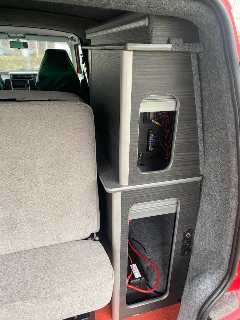 Cupboards fitted front to back, usb sockets, fuse box , volt meter, new leisure battery and split charger fitted.
