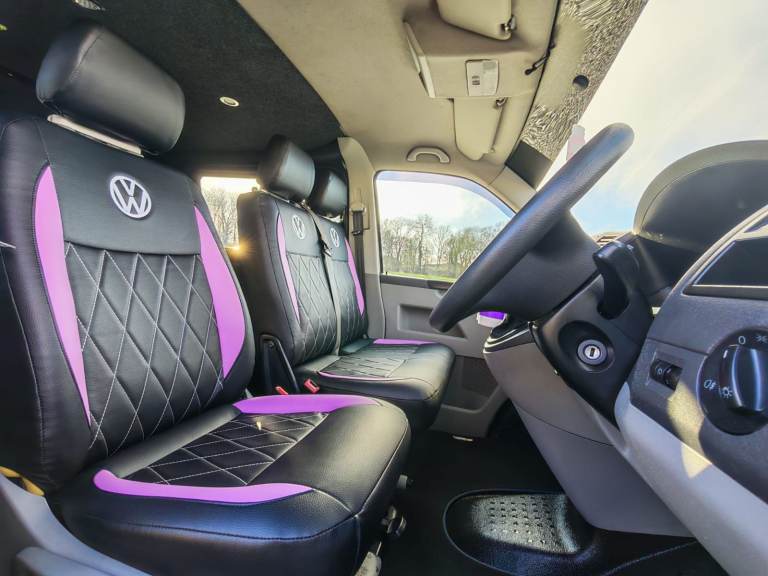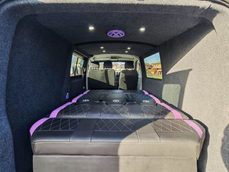 Matching full size rock'n'roll bed MOT compliant with 3 seatbelts in rear so the van can legally carry 6 people.