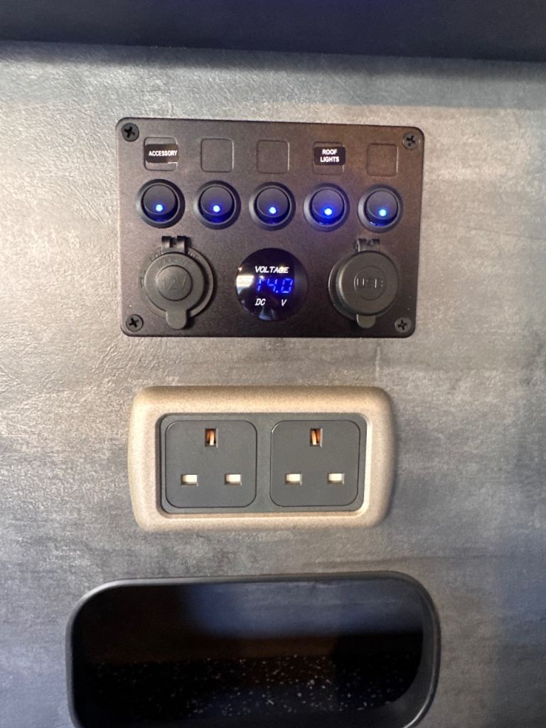 • split charger+USB charging, mains hook up and sockets