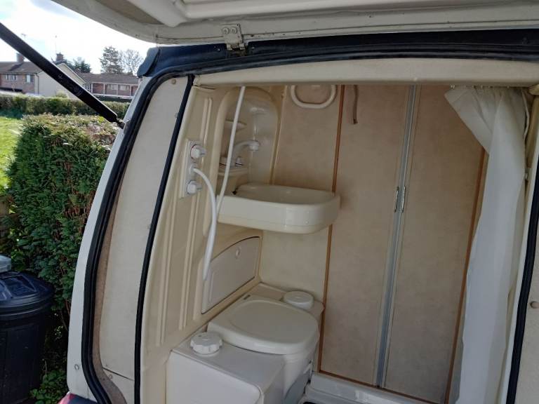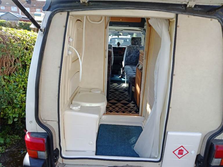 W reg 2000 plate it's done 92000 miles recent turbo at a cost of £2000 it's in really good condition it's a 2,5 TDI with an auto gearbox it's the much sort after camper with the rear shower room / pod with cassette toilet and sink it has hob , oven, fridge , heater , boiler , sink plenty of cupboard space quite a spacious camper sleeps 2 tax and tested recent battery flip up Kenwood cd / sat nav, reverse camera please ask questions do any checks , bring a mechanic