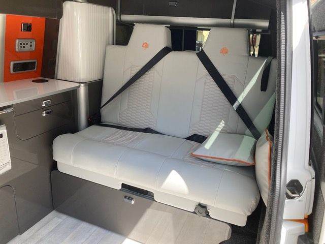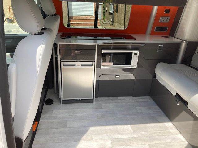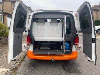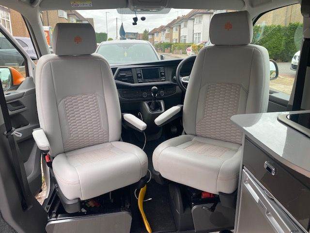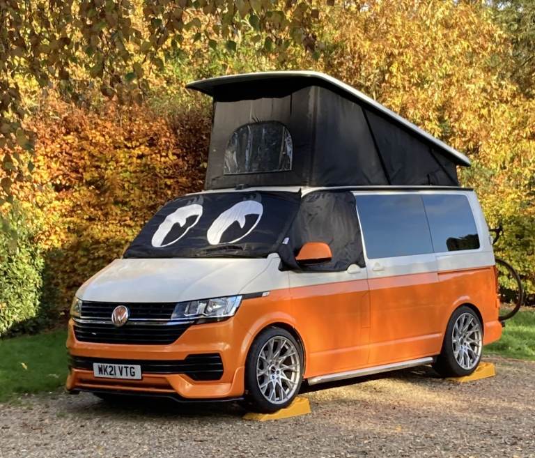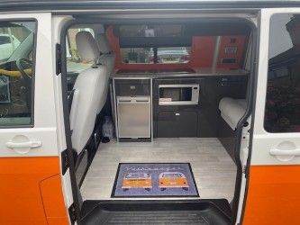 Campervan in excellent condition in the classic orange and white colour. Cab has a/c and apple play and both front seats swivel. There is a bed in the pop top roof and an RnR bed in the lounge, with two burner hob and microwave. The van has also been fitted with solar panels on the roof, so enabling off grid camping and there is also a tow bar on the rear. We will also add in for free, the cab wrap around blinds as well as an insulating wrap around for the pop top roof adding warmth if you want to go away in winter, a driveaway awning as pictured, with carpet and lighting and a sun canopy.