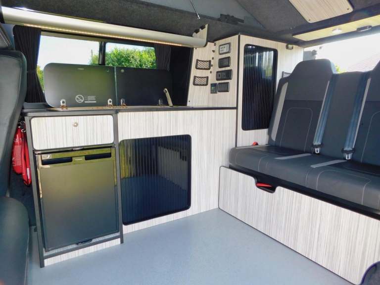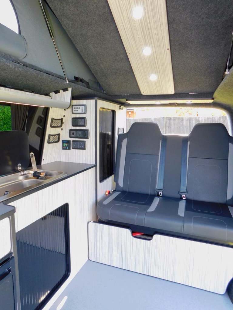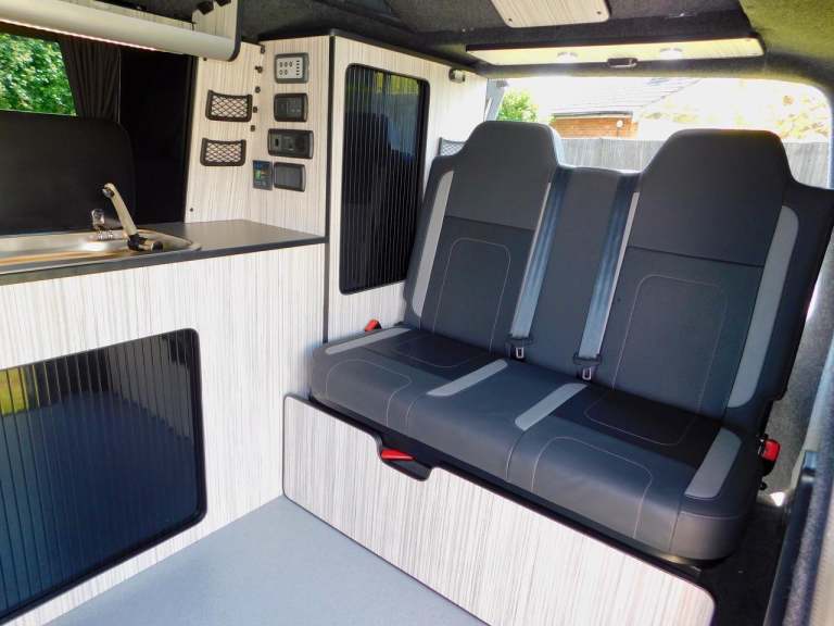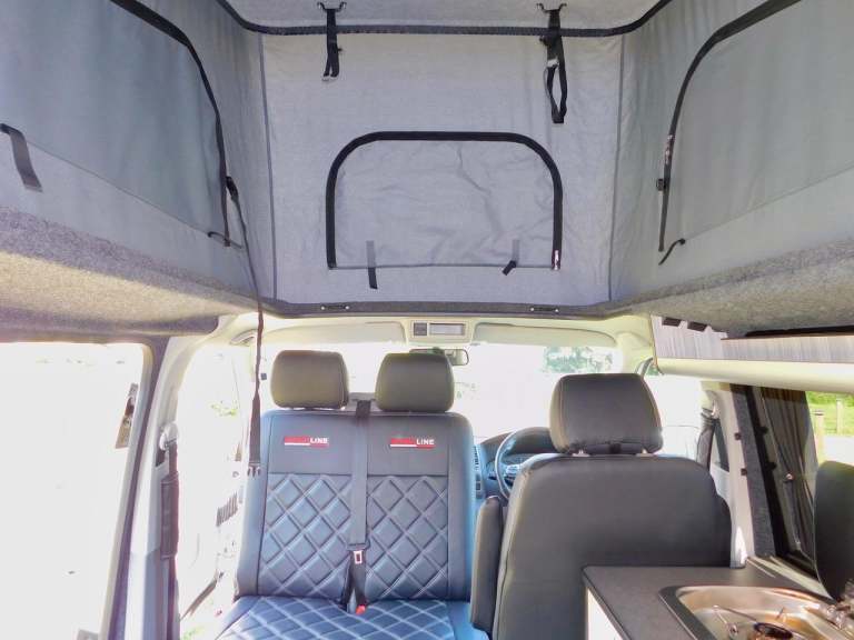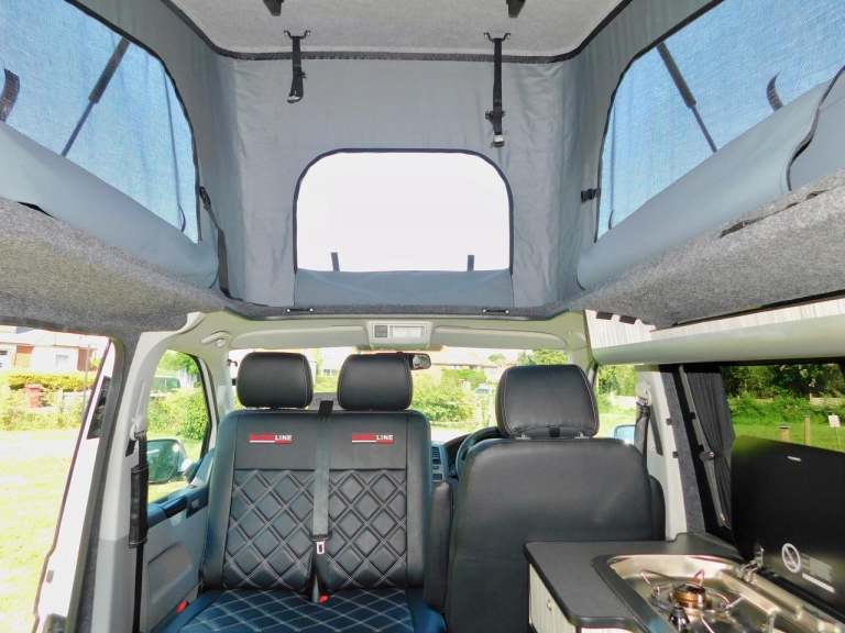 Easy to Drive and Park on the smallest of Driveways and in the Supermarket Car Park. You could easily use this as your Everyday vehicle as well as your Luxury Pop Top Campervan. On the Outside we have the smart Rare to Find Two Tone Bright Blue and White Paintwork and inside we have the stylish Sport Line Bentley Style contemporary upholstery with Contrast Stitching and the High Quality Light Driftwood finish Cabinetry, complete with the contrasting Slate Grey Worktops.