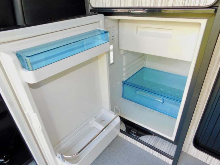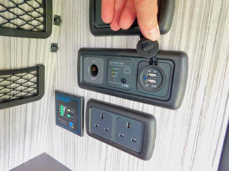 The KITCHEN is comprehensively finished and includes a Dometic 2 Burner Gas Hob and Sink with an Electric Tap, all housed under toughened glass hinged tops, Plus a smart Black Finish Dometic Fridge with a good size Freezer Section for your Ice etc There are several Tambour Door Cupboards plus plenty of worktop space. We have very stylish and Contemporary Led Lighting throughout.There are also plenty of USB and 3 point sockets throughout..